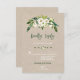 Design de cartão único e elegante com rosas de aquarela branca deslumbrantes, buquê de peônias, um divisor floral com setas como corações, escrita manual moderna "Responda gentilmente", em um fundo de burlap. Use a ferramenta Personalizar para adicionar suas informações, alterar as fontes e a cor do fundo. Para itens correspondentes, visite minha Coleção de Florais Brancas Rústicas em Madeira/Burlap.