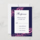 Este é o RSVP coordenador do Convite para Casamento de Penas da Fúchsia e Marinhos. É apresentado no papel de base; no entanto, sugiro o peso e a textura do papel de linho. Se forem necessários itens complementares adicionais, entre em contato conosco em prettyfancyinvites@gmail.com com o seu pedido.