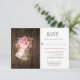 RSVPs russos apresentando um jarro de mason cheio de flores silvestres cor-de-rosa com respiração de bebê e verde. A parte traseira da placa apresenta luzes de cordas brancas com um jarro de pedreiro rosa pálido sobre um fundo de madeira de celeiro de agentes atmosféricos. Não se esqueça de adicionar suas iniciais à etiqueta de safra! Se você quiser essa design em um produto correspondente, ou precisar de ajuda, entre em contato comigo através da minha loja.