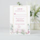 Este rsvp de casamento apresenta um fundo branco nítido, enquadrado por uma borda geométrica dourada que adiciona um toque moderno e elegante. As peônias cor-de-rosa macio e as folhas verdes esmagadas acendem a design, trazendo um sentimento romântico e inspirado no jardim. A tipografia é variada e graciosa, combinando estilos serif e cursivos em tons pretos, cor-de-rosa e dourados para uma apresentação refinada, porém quente. O layout geral é equilibrado e comemorativo, perfeito para um casamento vinícola com uma mistura de encanto clássico e talento contemporâneo.