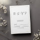 Um convite RSVP de casamento de linha reta fina, branca e dourada, preto minimalista, é a design perfeita para complementar um evento clássico e sofisticado. Ele apresenta uma simples e elegante borda dourada com tipografia preta sobre fundo branco. Este design tradicional, único e clássico impressionará todos os seus convidados.