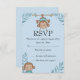 Este RSVP personalizável moderno apresenta macacos em um fundo azul. Personalize-o adicionando seus detalhes na fonte de sua escolha!