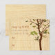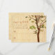RSVP divertido e caprichoso para combinar com o 'Conjunto de convites rústicos de madeira'. Ilustração de dois pássaros amorosos em uma árvore. O padrão de madeira continua no verso (imprima texto adicional no verso).