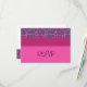 Um design clássico com um fundo cor-de-rosa com um padrão de pelo de girafa rosa e roxa acentuando o topo. Personalizar conforme desejado.