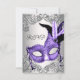 Bela máscara de penas roxa, prata e RSVP do partido mascarada vermelho. Este RSVP de mascarada roxo elegante é facilmente personalizado para o seu evento adicionando os seus detalhes no estilo de fonte e na redação da sua escolha.