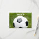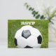 Uma bola de futebol com grama verde está representada neste cartão RSVP de esporte.