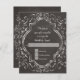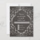 Retorno de resposta RSVP correspondente por cartão de correio, incluindo envelope branco. Começando com a caligrafia de espiral desenhada à mão, a caligrafia floresce que foi transformada em um efeito de quadro de quadro e escrita à mão e emparelhada com uma moldura de estilo quatrefoil de borda dupla também em desenho de giz. No verso está um lugar para colocar seu dentro inicial de monograma o esboço de um design de starburst. Arte de uma artista e designer internacionalmente licenciada, Audrey Jeanne Roberts, copyright.