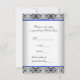 Lace branco prateado elegante com RSVP de casamento de diamante azul-real marinho. Este lindo RSVP preto e azul real pode ser usado como um cartão de menu, programa, direções, etc., devido ao conveniente tamanho de 3 1/2 x 5 polegadas. Adicione os seus detalhes à frente e/ou atrás, simplesmente escolhendo o botão "Personalizar!" para começar a adicionar os detalhes do evento, estilo da fonte, tamanho e cor da fonte e texto. Observe que todos os designs de convite que você encontrará no Zazzle são gráficos impressos em estoque de papel plano sem joias reais, arcos, levantados, gravados em relevo ou peças ou peças adicionadas.