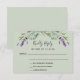 Um fundo verde sábio, texto preto. Decorado com flores de lavanda e verde de eucalipto. Personalize e adicione uma resposta por data. Traseiro: Cor verde de fundo do sábio.