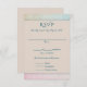 Cartões RSVP de menu de casamento verticais do Living Seas com cores temáticas de praia. Liste três opções de menu e peça uma contagem de convidados no cartão. Cor de bronzeado de areia com aspecto em camadas, o design corresponde ao papel de carta na coleção do Mar Vivo.