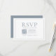 Um clássico, elegante cartão de cercado QR Code RSVP de casamento azul empoeirado, com caligrafia de script. Perfeito para a noiva moderna ter um caso formal. Consulte a coleção de cheios aqui: https://www.zazzle.com/collections/elegant_dusty_blue_classic_script_wedding-119277300212576021 Copyright Elegant Invites, todos os direitos reservados.