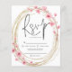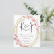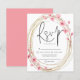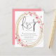 Um alternativo do preço do orçamento. Os envelopes são um extra opcional. Este design elegante tem uma estrutura artística de linhas de tendência crivíveis decoradas com primavera florais ao redor de suas palavras, com um roteiro de na moda para RSVP em preto. O resto do texto pode ser facilmente personalizado para suas palavras. Um plano de fundo rosa de coordenação está no verso, que pode ser alterado para outra cor de sua escolha por meio da opção personalizar mais.