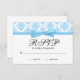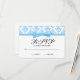 Uma placa de resposta RSVP formal com cor damasco azul clara e ilustração de arco. Personalize facilmente com suas informações. As designs são ilustrações/gráficos impressos - NÃO É REAL.