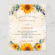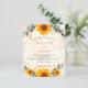 Um fundo branco e ouro, de cor aquosa, decorado com girassóis, eucalipto verde e ouros e pó de ouro falso. Personalize e adicione seus nomes e detalhes da festa. Voltar: adicione sua url ao seu site de casamento para obter mais informações e registro de RSVP.