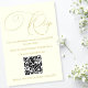 Este cartão RSVP contemporâneo é o companheiro perfeito para a sua suíte de casamento Verona Sunset. Apresentando um fundo de marfim e um elegante texto em ouro, este cartão direciona os convidados para o site do seu casamento, onde eles podem facilmente encontrar todos os detalhes do evento e enviar seu RSVP on-line. É uma solução na moda e eficiente que mantém a sua suíte de papelaria coesa e o seu planejamento de casamento sem problemas.