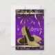 Calçados de alto salto de ouro elegantes, placa RSVP preta, roxa e dourada.