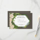 Esta placa RSVP apresenta um fundo escuro e sujo com uma sensação suave e rústica. Letras fáceis de ler, enquadradas por magro verde, rosas brancas delicadas, samambaias e líquens.