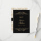 © 2012 Designs socialitas. Nossa elegante placa de resposta de evento tem um belo fundo damasco dourado em branco e design florescente a preto. Emparelhe esta placa RSVP elegante com o convite correspondente.