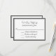 Uma placa RSVP elegante e limpa, com borda simples, que pode ser editada com sua escolha de cor em volta da borda externa. Mostrada aqui com uma borda preta, escolha a opção personalizá-la e selecione uma cor de fundo diferente se desejar alterar a cor da borda externa desta placa. Certifique-se de alterar tanto a parte frontal quanto a parte traseira se você fizer alterações de cor.