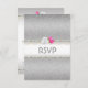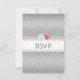 Placa RSVP Elegante em Linda configuração branca pérola e damasco prateado com pérolas cortadas e 3 rosas, uma rosa branca, 2 rosas cor-de-rosa - Muito elegante - NOTA: não existem rosas reais, prata, diamantes, gemas, pérolas, precioso metal ou ouro neste produto de papel. Estas são desenhadas artificialmente para parecer reais pelo artista.