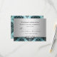 RSVP azul-turquesa. Linda estampa damasco preta e joias. Por favor, note: Todas as imagens são planas! Elas não têm joias reais!