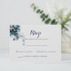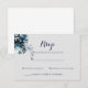 Este clássico RSVP floral em aquarela branca é perfeito para um casamento rústico. O design apresenta flores azuis pintadas à mão em aquarela e folhagens cuidadosamente montadas em um lindo buquê.