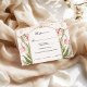 Flores suaves e sotaques de ouro graciosos se juntam nesta placa RSVP inspirada em Art Nouveau. É uma design romântica perfeita para casamentos antigos, jardins ou de matas pastel. Este modelo inclui seções editáveis onde os casais podem adicionar até três opções de refeições, permitindo que os convidados façam sua seleção com facilidade. Parte de uma suíte de casamento coordenada, esta placa RSVP complementa o convite correspondente disponível na coleção "WHIMSY BLOOMS". Também disponível em 3 cores diferentes de amarelo, azul e rosa.
