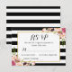 =================== ABOUT ESTE DESIGN ==================> Na moda Moderno Black White Stripes Florais RSVP Placa Floral RSVP. Trendy Stripes Floral Dourado Convite à Celebração de Casamentos. (1) Você pode alterar as faixas pretas para qualquer cor que quiser, clicando no botão "Personalizar" e definindo a cor de fundo. Todo estilo de texto, cores, tamanhos também podem ser modificados para ajustado das suas necessidades. (2) Se preferir um papel mais espesso, você pode considerar escolher o Tipo de papel correspondente. (3) Se você precisar de algum item de personalização ou correspondente, entre em contato comigo.
