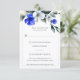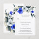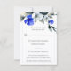 © 2023 Socialite Design Inc. & LICENSORS. Belo cartão RSVP floral azul e branco. O cartão de resposta é emoldurado por uma borda de cinza prateada. Um convite elegante para um primavera, verão, outono ou casamento no inverno. Entre em contato com Designs Socialite se quiser ter outros produtos correspondentes a esta coleção.