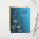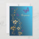 Este cartão de resposta de casamento floral azul-azulado e dourado tem borboletas roxas. Fica melhor no papel brilhante pérola que dá aos efeitos especiais dourados e outros aspectos metálicos dos efeitos impressos o melhor brilho e esplendor. A escolha do texto e do papel é personalizável. Se você precisar de itens correspondentes neste design, envie um e-mail para niteowlstudio@gmail.com.