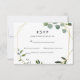 Este rsvp de eucalipto verde geométrico dourado é perfeito para qualquer ocasião. O design apresenta uma bela moldura geométrica dourada adornando elegantes folhas de eucalipto verde em aquarela.