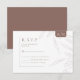 "Elevem seus convites para eventos com nossa design de RSVP Minimalista Elegante Abstrato. Com linhas limpas, uma sofisticada paleta de cores e um abstrato sutil, esta placa RSVP é perfeita para casamentos, jantas formais ou celebrações exclusivas. Sua estética minimalista garante que ela complementa qualquer tema enquanto exausta a elegância do eterno. Totalmente personalizável para incluir seus detalhes e preferências, esta placa RSVP adiciona um toque de refinamento moderno ao planejamento de eventos."
