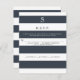 COR PALETA: COLEÇÃO marinho azul e branca: Correspondência entre placas de resposta RSVP de design verticais com opções de menu (basta excluir ou substituir o texto naquela linha se você não precisar deles). Com um tema de chic e design de tendências de amplas listras, esse convite tem um estilo de tendências contemporâneo. Cada camada de texto se alterna com o azul escuro e o branco para um efeito simples mas atordoante. Gráfico negro, mas na moda e moda à frente. Temos um conjunto completo de produtos para coordenar. Informações iniciais e de rsvp monogramadas são fáceis de personalizar com os campos de modelo de personalização.