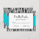 Uma placa plana moderna, azul lacrimogênea e zebra negra, RSVP.