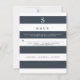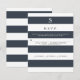PALETA DE CORES: azul-marinho e branco COLEÇÃO DE DESENHOS: cartões de resposta RSVP com desenho vertical correspondente e opções de menu (simplesmente exclua ou substitua o texto nessa linha se não precisar deles). Com um tema de design sofisticado e moderno de listras largas, este convite tem um estilo contemporâneo atual. Cada camada de texto alterna entre azul escuro e branco para um efeito simples, porém impressionante. Gráfico ousado, porém elegante e moderno. Temos um conjunto completo de produtos coordenados. A inicial monogramada e as informações de RSVP são fáceis de personalizar com os campos de modelo de personalização.