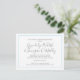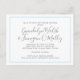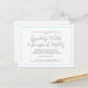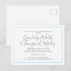 Cartão postal de casamento com design minimalista. Branco com texto de cinza no moderno script manuscrito e texto impresso. A placa está esboçada em um quadro azul fino. Altere facilmente a cor da linha de borda usando a área "personalizar mais". Os nomes da noiva e do noivo estão em um roteiro grande. Esta é uma maneira simples e barato de direcionar os convidados para um site de casamento para ver planos, ver fotos e responder online. As linhas são fornecidas no verso para endereços.