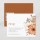 Gabinete de RSVP de Casamento de Florais do outono Elegante de Orçamento. Um alternativo MENOR de 4,5" x 5,6", compatível com o orçamento. Disponível em um STOCK de PLACA SEMI GLOSS 110 lb ou um STOCK de PAPEL THINNER SATIN FINISH 80 lb. Adicione seu código QR à sua página de resposta no site do casamento no verso substituindo o código QR na amostra. . Você pode criar códigos QR gratuitamente on-line. Basta pesquisar "Criador de código QR" e muitas opções surgem para criar gratuitamente. Esta design tem lindas flores e folhagem autóctones castanhas e cremes, junto ao lado direito e à elegante tipografia em minúsculas.