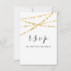 Delicado e elegante RSVP de aniversário de casamento, churrasco de noiva decorado com motivo floral, escrita elegante e luzes douradas.