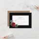 Lindas bordas florais de aquarela... com lindíssimos peonias vermelhas, verde-luxuoso, eucalipto, e hálito de bebê... adornam esta carta RSVP enquadrada, com roteiro de tipografia dourada. Os ricos vermelhos e verdes no spray floral disparam os elegantes fundos pretos, brancos e dourados. Adicione seus próprios detalhes seguindo o link "Personalizar". Se quiser assistência, por favor contacte-me através de uma mensagem aqui no Zazzle ou por correio eletrônico. susanmingaydesigns@gmail.com