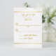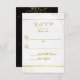 Um Cartão RSVP Preto e Dourado Elegante projetado com texto e sotaques dourados para felicitar seu pacote de Convite de Casamento. O texto frontal inclui a Data de Resposta e o espaço para os Convidados inserirem seus nomes. O reverso é desenhado com sotaques dourados em um fundo preto. Para personalizar, basta inserir sua Data de Resposta no nosso modelo, substituindo o texto de amostra. Certifique-se de ver a Coleção de Casamento Dourado e Preto Elegante completa para cartões e acessórios correspondentes.