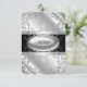 Menina negra e prata elegante, mulheres de aniversário, noivado de festa de Natal, convite RSVP. Adicione os seus detalhes à frente e/ou atrás adicionando os detalhes do evento, estilo da fonte, tamanho da fonte e cor e texto. Observe que todos os designs de convite que você encontrará no Zazzle são gráficos impressos em estoque de papel plano sem joias reais, arcos, levantados, gravados em relevo ou peças ou peças adicionadas.