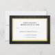 Este RSVP apresenta um fundo de faixa vertical preto e cinza profissional com uma caixa branca com uma borda dourada no centro. O texto personalizável permite adicionar as informações de resposta.
