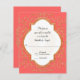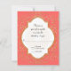 Retorno de resposta RSVP correspondente por cartão de correio, incluindo envelope branco. NOTA: este é um convite impresso em formato simples, não há uma folha de metal ou brilho real. Os efeitos são produzidos graficamente. COLLECTION: A partir do momento em que a caligrafia de espiral desenhada à mão floresce, que se transformou em efeito de brilho gráfico e é emparelhada com uma moldura de estilo quatrefoil de borda dupla, também em efeitos de brilho de ouro. Dentro do quadro e atrás de seu modelo de texto facilmente personalizado está um design de linha desenhada à mão por raio solar. No verso está um lugar para colocar o seu dentro inicial de monograma no design de explosão de estrelas. Este convite é o casamento perfeito de design sentimental doce, romântica e elegância moderna. Fácil de personalizar para qualquer ocasião e um conjunto completo de produtos está disponível. Cor: cor-de-rosa-laranja-claro-coral, cor-de-rosa-esbranquiçada e dourada digital com aspecto brilhante.