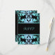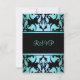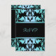 Este RSVP personalizável Elegante apresenta uma cor damasco azul em um plano de fundo preto. Personalize-o adicionando seus detalhes na fonte de sua escolha!