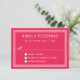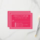Este coral ousado, cor-de-rosa, pop de cartão RSVP de casamento com estilo e adiciona entusiasmo aos seus convidados enquanto eles antecipam seu grande dia. Junto com o esquema de cores ousadas, um simples quadro triplo de borda elegante em branco rodeia o design no estilo clássico. O texto branco em uma face de tipo contemporâneo transmite sua mensagem em belo contraste com a cor de fundo em negrito. Personalize o modelo de texto fácil de usar com a data de resposta RSVP necessária.