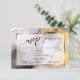 RSVP | Pintados à mão, em pedaços de ouro, cor-de-rosa pálido e preto de carvão vegetal - e uma estrutura de ouro com um centro branco puro que destaca o texto do convite. O texto de caligrafia manuscrito na diagonal no topo permite um atraente pessoal quente - fácil personalizar o modelo.