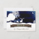 RSVP de Casamento Russo de Campground com Veado e Árvores. Um cartão de recepção rsvp ao ar livre excelente para todos os seus glampers ou noivas que só querem ter um casamento casual divertido na floresta! Estes RSVPs de Casamento de Madeira e Silhuettes Russos apresentam uma estrela azul cheia de árvores, veados e uma cadeira que contém um copo de vinho nela Eu forma uma silhueta branca perto do topo que desaparece em um fundo de prancha marrom. Um cartão rsvp de recepção de casamento ao ar livre, moderno, mas divertido. com