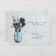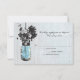 Perfeito para um casamento no estilo country ou talvez você apenas ame Mason Jars! Vintage Blue Mason Jar pendurado num gancho com flores silvestres contra um celeiro de meteoros. Primavera de resfriamento. Se tiver alguma dúvida sobre este design ou quiser uma mudança de cor, envie-me um e-mail para paula@labellarue.com Também verifique se o CONVITE DE CASAMENTO, a RECEPÇÃO e os CARTÕES DE SAÍDA CONVIDADOS correspondem!