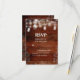 Lindo RSVP de Casamentos apresenta jarras de pedras, luzes de cordas e sobreposição de eucalipto sobre fundo de madeira. Totalmente personalizável, clique no botão Personalizar para alterar a cor, o tamanho e o estilo da fonte. Você também pode excluir, reorganizar ou adicionar mais texto para atender às suas necessidades.