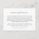 Com um elegante e que coordena com a coleção de núpcias elegantes de Design de Lea Delaveris, esta carta de informação e direções pode combinar bem com muitas suites de casamento. A design inclui muito espaço para texto personalizado para contar aos convidados sobre hotéis, estacionamento, ônibus, eventos de pré e posto e muito mais. O esquema de cores preto e branco chic pode ser ajustado a qualquer cor do casamento clicando em "personalizar mais".